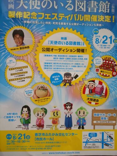窓から流れ込んでくる風が秋の気配を感じさせ始めました。 風鈴も心地良い音色を響かせてくれています。 いつも利用している図書館に出かけたら『公開オーディション』が行われて いました。 映画の舞台となる「大和高田市・御所市・香芝市・葛城市・広陵町…
