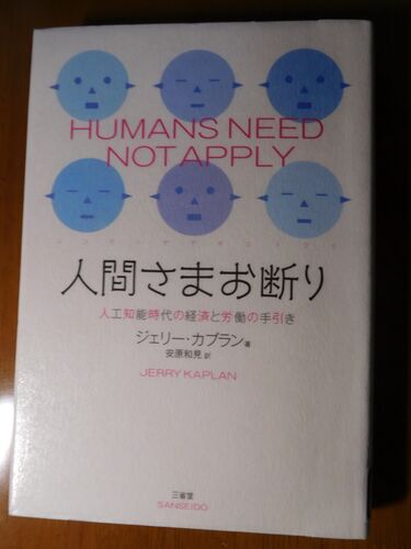 もうすぐ11月、秋の気配が濃くなってきました。 小田和正の「小田日和」を聴きながらキーボードに向かっています。 図書館で新刊書を眺めていたら,この本が目に飛び込んできました。 ジェリー・カプラン著 安蔵和見訳 『人間さまお断り』 人工知能時代の経済…