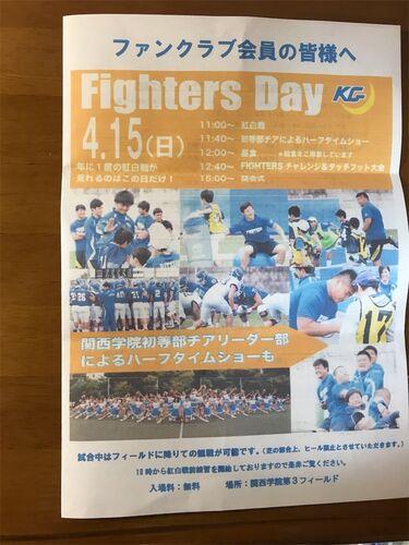こんばんは。 今日の奈良北西部、風の強い一日でした。 KGファイターズがお知らせを届けてくれました。 年に一度、選手たちの紅白戦、 初等部(小学生)のチアリーダーのハーフタイムショー チームとファンが交流できるイベントが組まれています。 大学の体育…