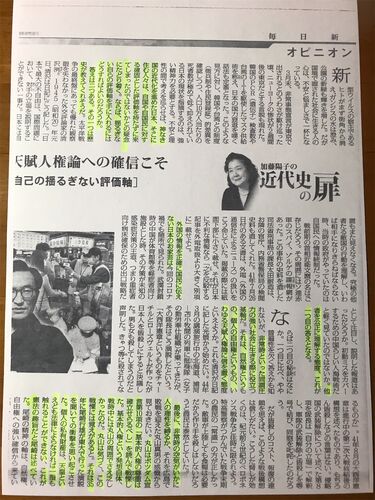 こんばんは。 待ってました! 加藤陽子の 近代史の扉 です。 毎日新聞 2020年5月16日 オピニオンより コロナ禍の下で暮らす私たちが、 心に留めておくべき基軸を示しています。 著者はこのように問題提起します。 神なき国の近代化を進めた日本、そこに住み…